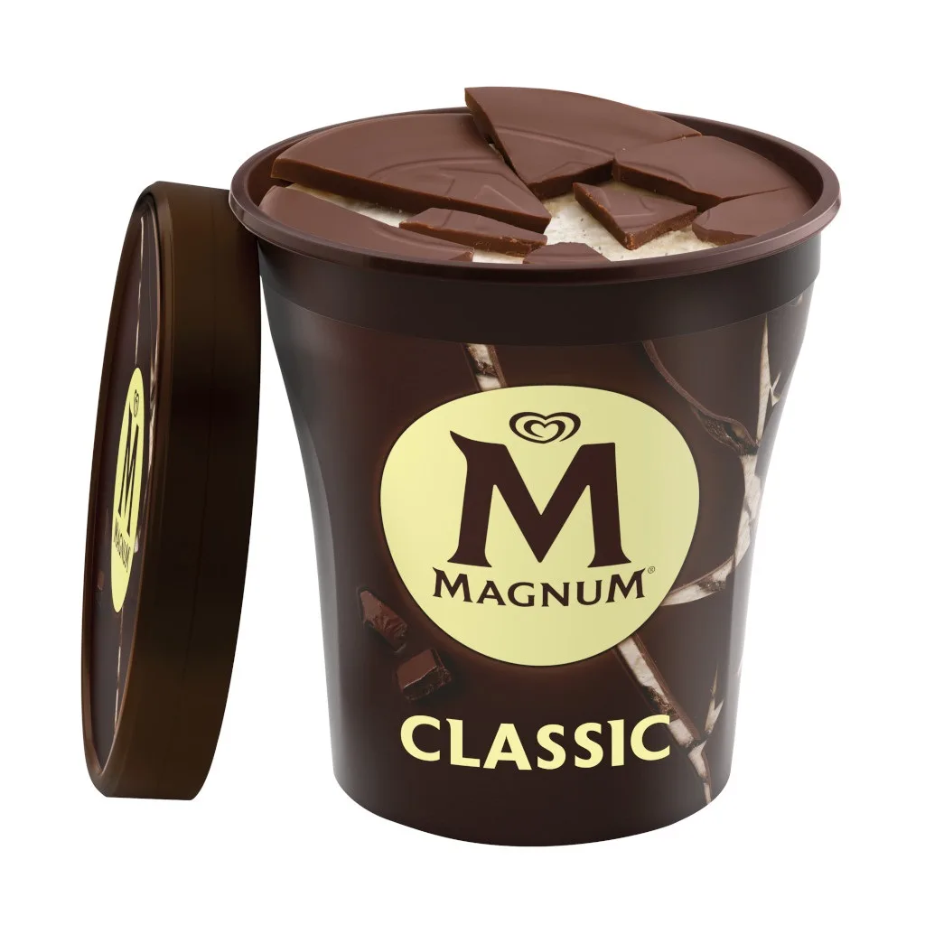 Creamy Madagascan vanilla ice cream covered in a thick layer of Magnum chocolate.