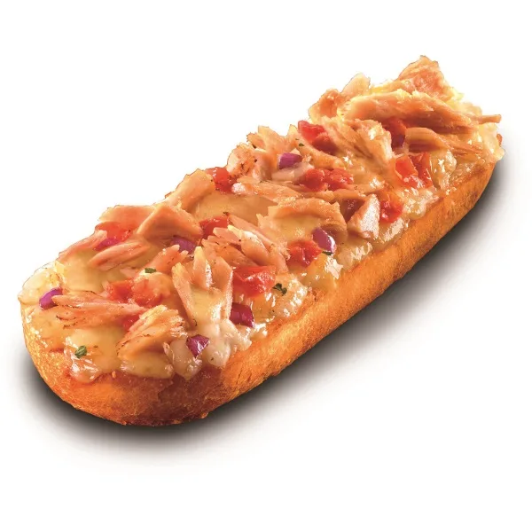 Atum suculento! Baguete com atum, cebola tomate e queijo Edam.