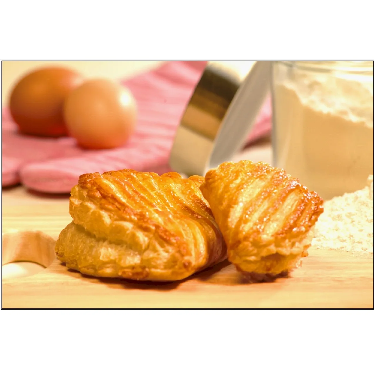 Massa folhada elaborada com uma mistura de manteiga e margarina, em forma de crista e com recheio de maçã. Não necessita de fermentação, basta levar ao forno e está pronta a servir.